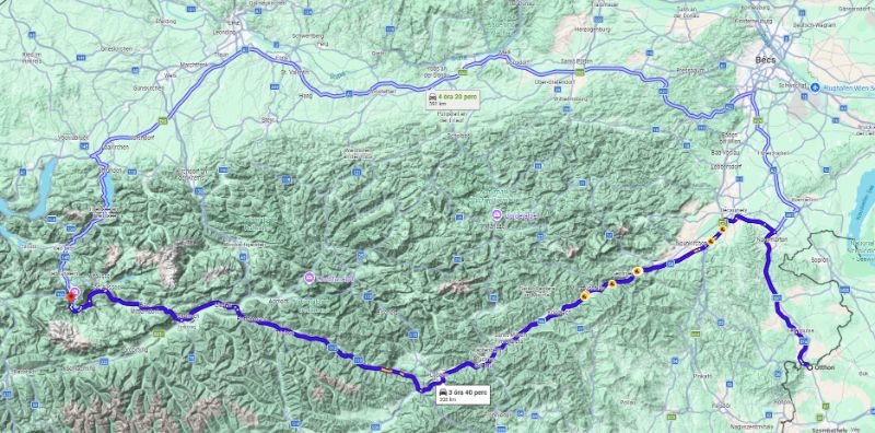 Útvonal, utazási idő és a városok amiken keresztül haladunk...